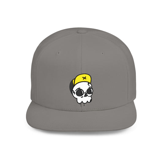 Flat Bill Snapback Cap – Skull with Yellow Cap Design